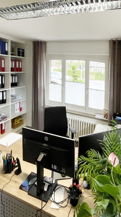 Unser Büroalltag ist geprägt von einem Mix aus fokussiertem Einzelarbeiten und dynamischer Teamarbeit, unterstützt durch digitale Technologien, die es uns ermöglichen, flexibel und zukunftsorientiert zu arbeiten. Jedes Teammitglied hat ein Einzelbüro, was eine konzentrierte und produktive Arbeitsumgebung schafft. Die Möglichkeit, sich in den eigenen Raum zurückzuziehen, fördert fokussiertes Arbeiten und gibt jedem Mitarbeiter die Freiheit, den eigenen Arbeitsplatz individuell zu gestalten.